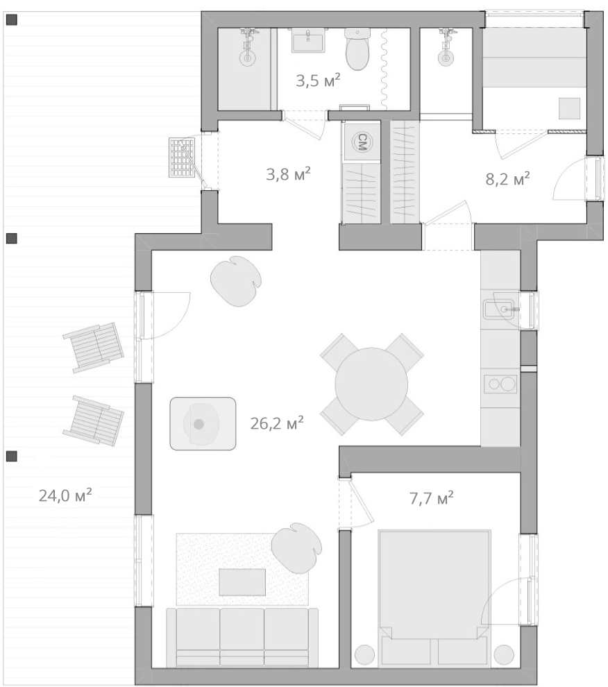 Living area 74 sq. m.